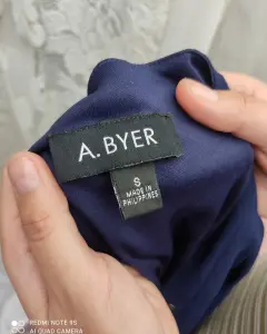 Vestido corto vaporoso. Vestido de tela vaporosa con forro completo manga 3/4, escote con cintas cruzadas color azul marinoTalla XS/SMedidasAxila a axila 43cmHombro a hombro 36cmCintura 72cmLargo 86cm