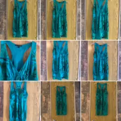 Hermoso vestido corto color verde pavo real 🦚, las fotos no le hacen justo. La tela es tipo licra gruesa de muy buena calidad . Nuevo sin detalles . Medidas axila 38 y largo 80 cms aproximadamente.