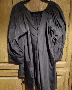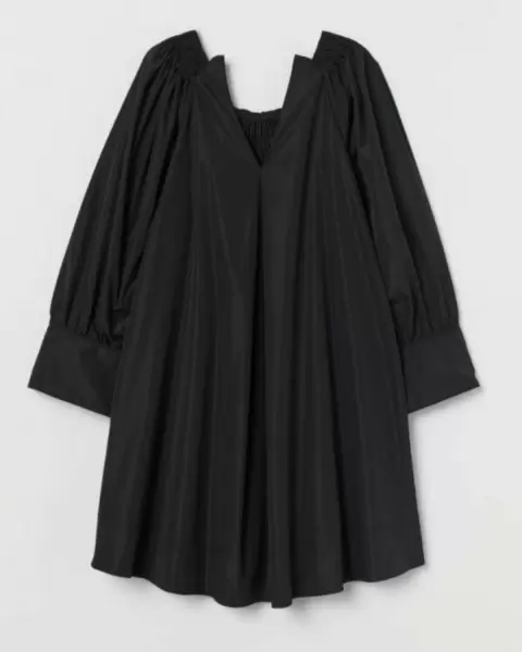 Vestido corto volumen H&M. EXCLUSIVO CONSCIENTE. Túnica en tafetán con ligero brillo confeccionada en poliéster reciclado. Fruncido en el escote, abertura en forma de V en la parte delantera y mangas globo amplias y extragrandes con puños anchos. Pliegue de caja en la parte delantera para mayor volumen. Con vuelo en el dobladillo.