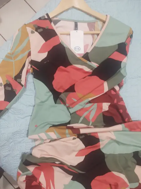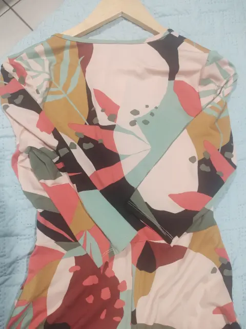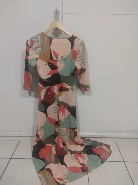 Vestido crusado. Hermoso vestido con diseño en colores pastel, largo y mangas a 3/4, tela en lickra