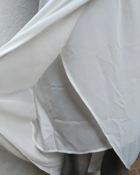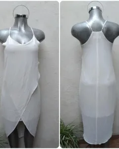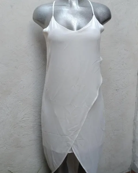 Vestido cruzado ligero. Hermoso vestido ligero de tirantes en color crema en tela tipo chiffon con forro tirantes ajustables en talla M sin detalles MEDIDAS ziza a ziza 46cm largo la axila hasta el forro 70cm y largo de la axila hasta el largo total de atras 102cm