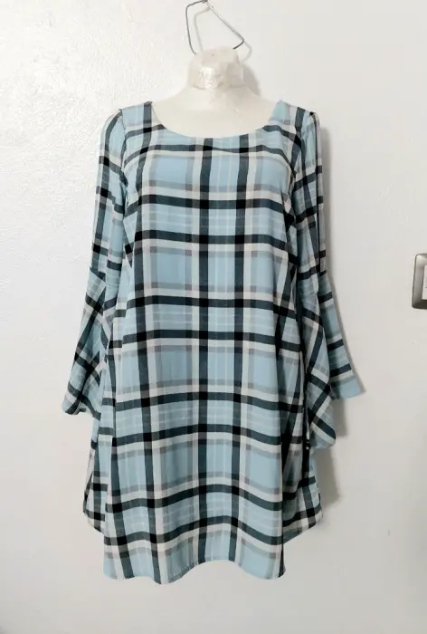 Vestido cuadros manga acampanada. Nuevo!La talla es M pero le va mejor a talla S porque de arriba esta reducido.Tiene forro y no se trasluce.No tiene strech.De axila a axila: 45 cmHombros: 37 cmLargo de manga: 55 cmLargo del vestido: 78 cmSin detalles y en perfecto estado.Marca GB