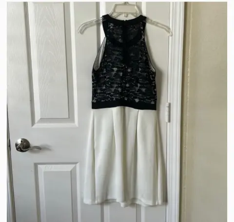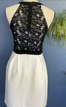 Vestido cuello halter encaje negro y parte inferior blanco en excelentes condiciones se uso 1 vez