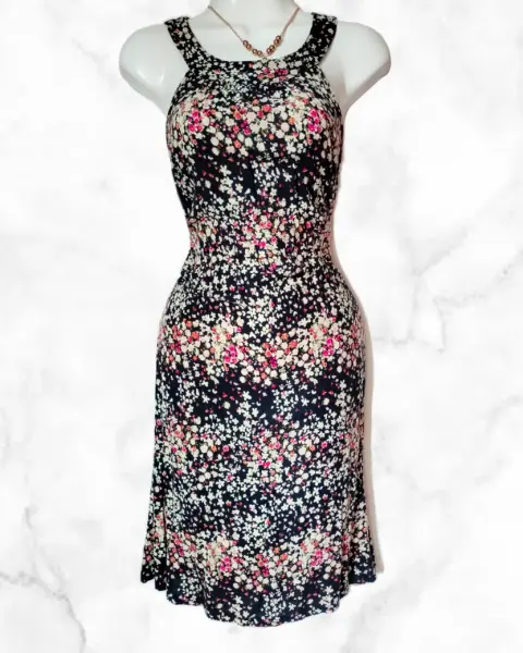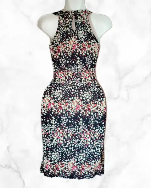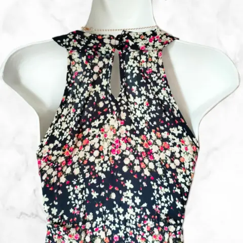 Vestido cuello halter -flores pequeñitas. Vestido floreado cuello halter Queda a talla S o M Medidas exactas 40 cm de axi-axi95 cm de largo
