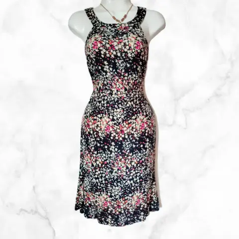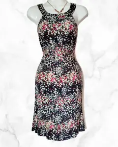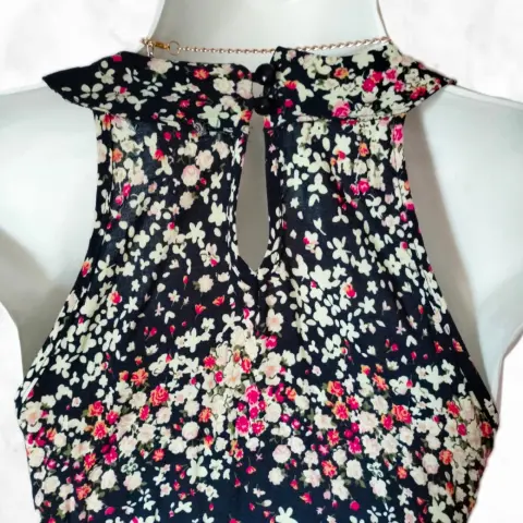 Vestido floreado cuello halter Queda a talla S o M Medidas exactas 40 cm de axi-axi95 cm de largo