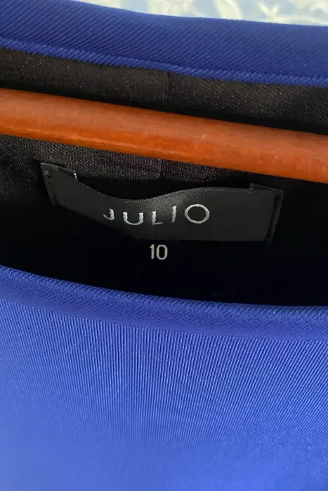 Vestido cuello redondo color azul rey. Vestido cuello redondo, sin mangas, color azul rey , marca Julio, talla 10, largo 88 cm, medidas axa 49 cm