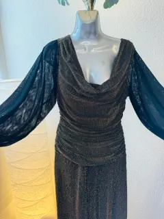 Vestido curvy de noche NigthWey. Vestido elegante de noche NightWey talla 14 color bronce, de manga larga de doble gasa y puños de la misma tela que el vestido y torso drapeado.Ideal para ese ésta época de fiestas decembrinas 🎄 o un evento que requiera código de vestimenta elegante.