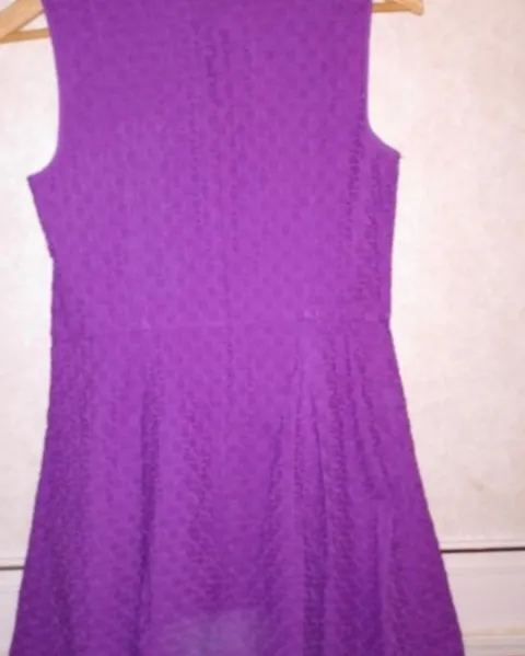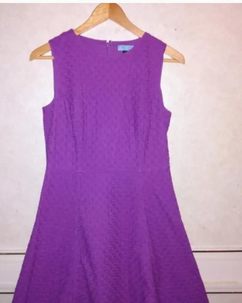 :Vestido en ojalillo talla 6, sirve a una MColor púrpura en perfecto estado