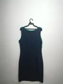 Vestido Dama. Vestido semi largo, sin manga, color azul, verde y beige, talla Mediana,