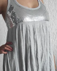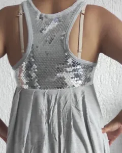 Vestido de algodón. Vestido de algodón plisado súper cómodo y detalle en lentejuelas, perfecto para usar con tenis o sandalias
