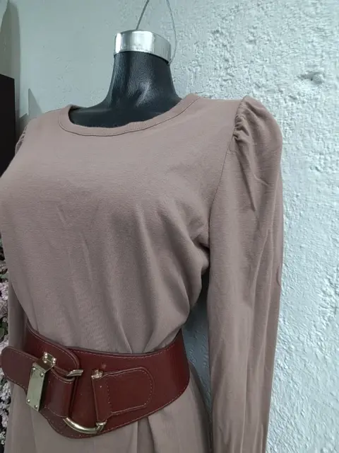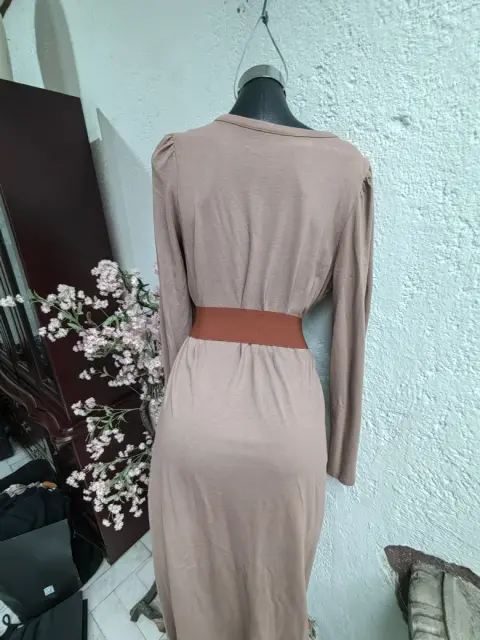 vestido de algodón, manga larga. Super lindo, cómodo y lindo fresco, vestido de algodón, abajo de la rodilla, pequeña abertura en los laterales (aproximadamente 15 cm)
