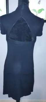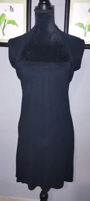 Bonito vestido negro de Algodón muy ligero.Talla SBonito detalle de mangas aglobadasEscote muy lindo en espalda.