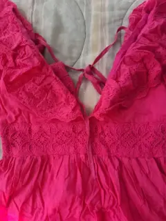 Vestido Shein de algodón con forro, color fucsia, talla L. La tela no estira, medidas cintura 76 cm,hombro 42, pecho 86 cm. Escote muy pronunciado. Línea A, queda arriba de la rodilla. Muy fresco. Es nuevo.