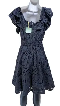 🌻 Vestido de algodón Ryegrass 🖤. 🌻Vestido Ryegrass 🖤🌻100% algodón 🙂🌻 Vestido acampanado sin mangas volante corto 🥰😉🌻Cuello cuadrado🌻Con olajes bordados 😉🌻 Cierre de cremallera 😃🌻 Última foto de referencia, solo cambiaría a color negro 🖤🌻 Súper hermoso 😍 ¡Te encantará! 🥰🌻Nota: los colores pueden variar un poco del original dependiendo de la luz y de la cámara 📸