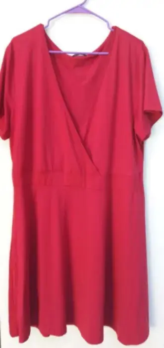 Vestido fresco de camiseta con textura piel de durazno, manga corta, cuello v, 118 cm pecho,107 cm cintura, 140 cm cadera, 101 cm largo, usado UNA VEZ, SIN DETALLES.Envió a la brevedad.Todas las compras tienen obsequio