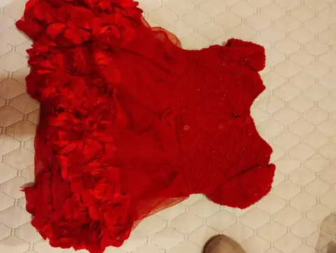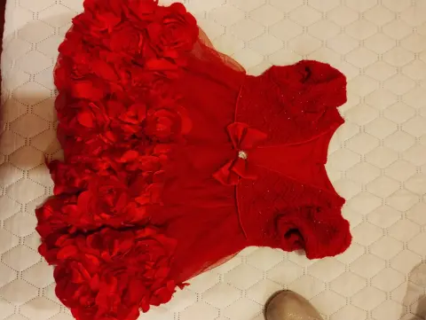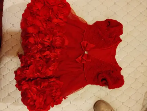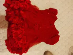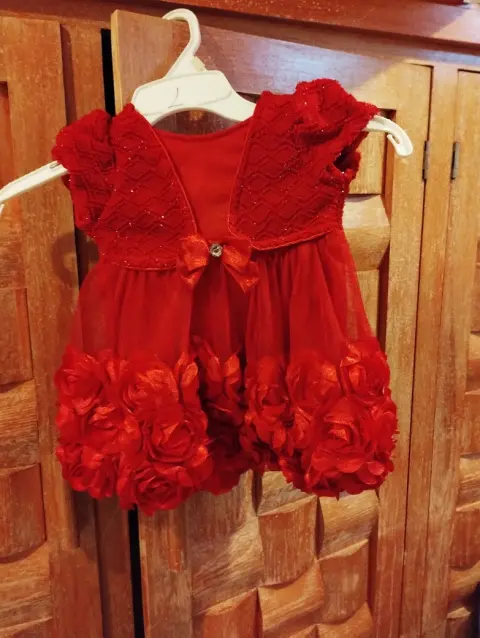 Vestido de bebe 12 meses rojo de fiesta con detalles en la parte de la falda y manga corta solo se uso una vez y le queda a niñas hasta de año y medio