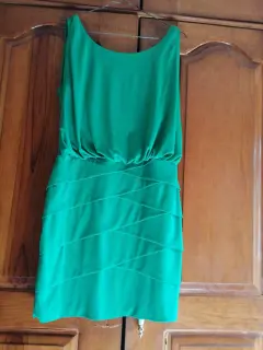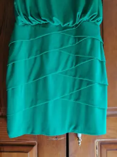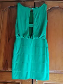 Vestido de cocktail color verde, corto, con detalle hermoso en falda y con avertura discreta en espalda, tela poliester y elastano, ajusta perfecto.