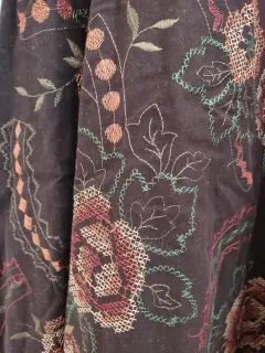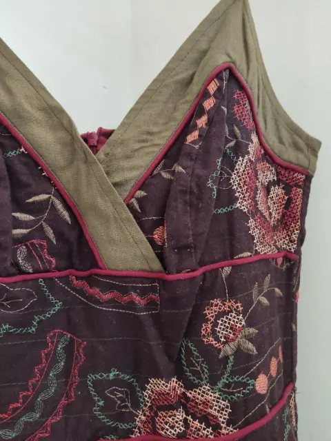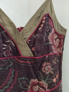 Lindo vestido de cocktail, color café con bordado de punto de cruz, tirantes. Talla chica, lavable en casa.