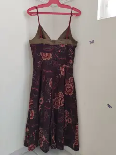 Vestido de cocktail muy original ❣️. Lindo vestido de cocktail, color café con bordado de punto de cruz, tirantes. Talla chica, lavable en casa.