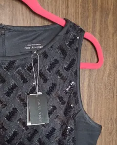 Vestido de cocktail Rue de la Paix. Vestido corto negro sin mangasTalla 32Bordado de lentejuela al frente, con forro completo, cierre invisible y pequeña abertura en la falda por la parte de atras