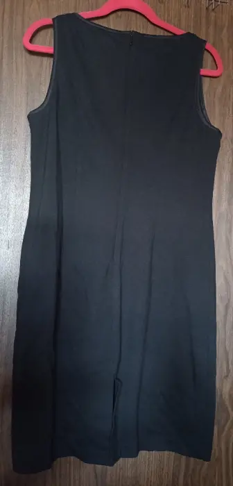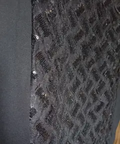 Vestido corto negro sin mangasTalla 32Bordado de lentejuela al frente, con forro completo, cierre invisible y pequeña abertura en la falda por la parte de atras