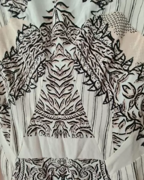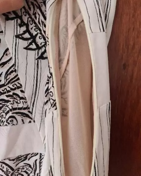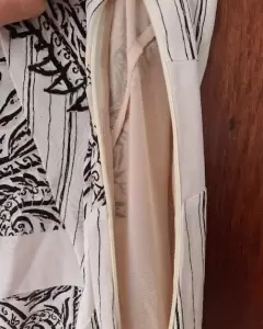 Vestido a la rodilla, ligero, ideal para primavera. Tiene un fondo beige. Cierre a un costado. Medidas 41 cm de axila a axila. Cintura 35 cm largo 104 cm