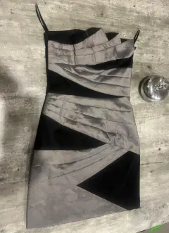 Vestido de cóctel. Vestido de costeño negro con gris, es corto y entallado ideal para un cóctel de noche
