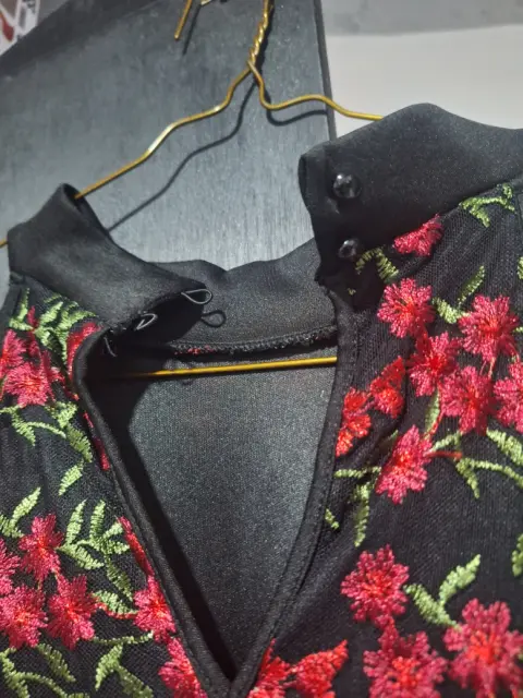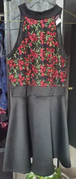 Vestido de coctel 😝. Es mediano, amarre en el cuello, floresMedidas aproximadas en plano:Largo: 85cmBusto: 38cmCintura: 37cm