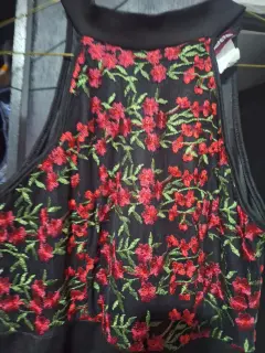 Es mediano, amarre en el cuello, floresMedidas aproximadas en plano:Largo: 85cmBusto: 38cmCintura: 37cm