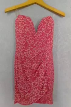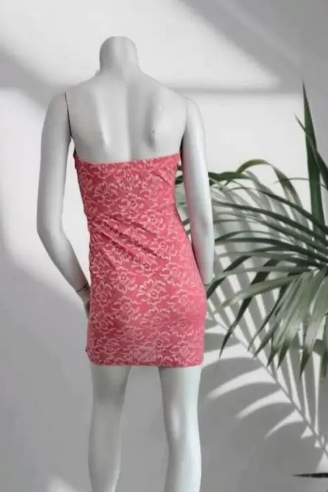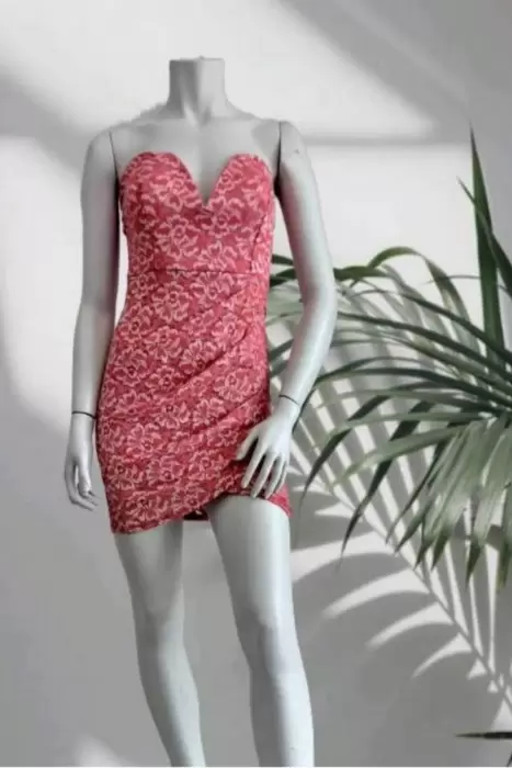 Mini vestido entallado straples Color coral, con discretos destellos plateados, Tela Spandex ajustable.Talla M