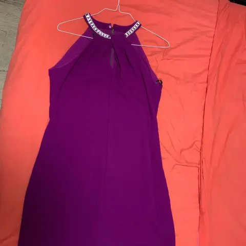 Hermoso vestido color magenta puesto una sola vez cuello Halter con pedrería excelentes condiciones, tiene tintorería
