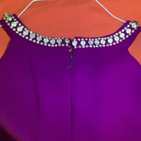 Vestido de cóctel color magenta julio. Hermoso vestido color magenta puesto una sola vez cuello Halter con pedrería excelentes condiciones, tiene tintorería