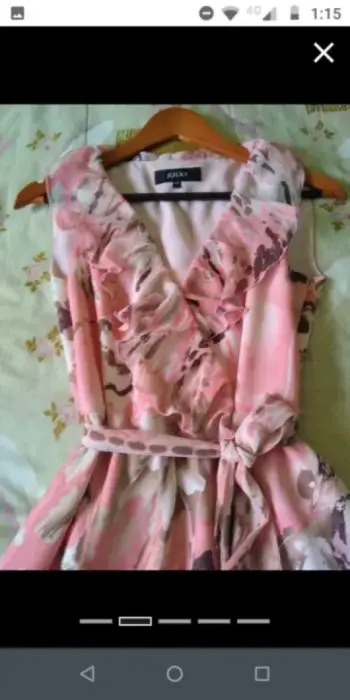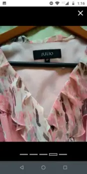 Lindo vestido midi, llega a la rodilla. Tiene escarolas en el escote que es cruzado hasta la cintura. Luce muy femenino, ideal para un evento de día en jardín o playa. Se usó poco, está en perfecto estado.