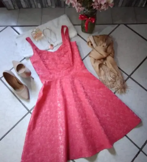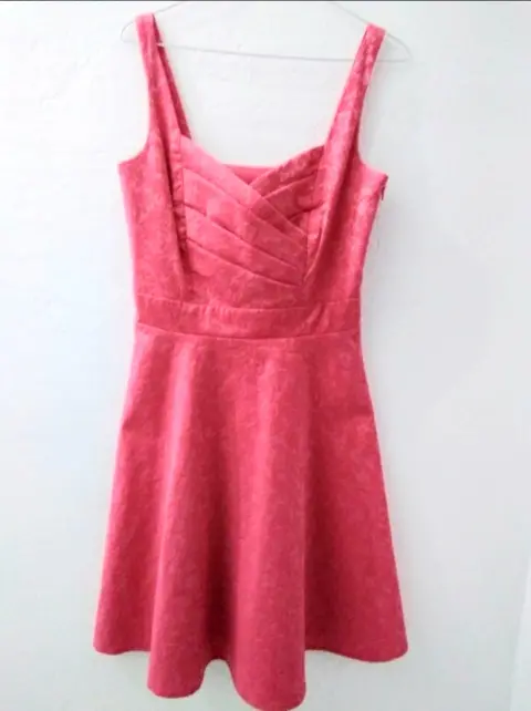 Hermoso vestido de coctel en tono coral. Lucirás bellísima, la tela tiene textura de terciopelo con destellos. Talla 6 americano, es como S. Tiene cierre al costado y no tiene strech. Completamente Nuevo, sin etiqueta.De axila a axila 42 cm,Largo: 74 cm.
