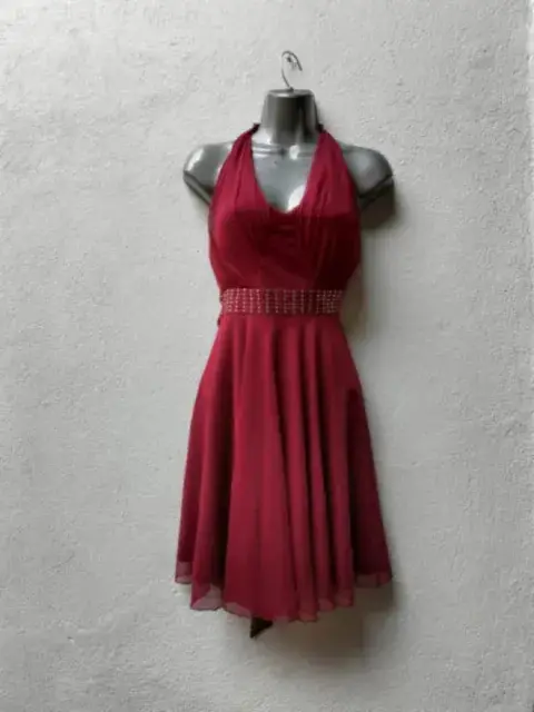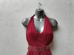 Hermoso vestido de coctel corto , tela muy suave y cómoda de gasa con detalle de aplicación en cintura, corte halter escote V espalda descubierta