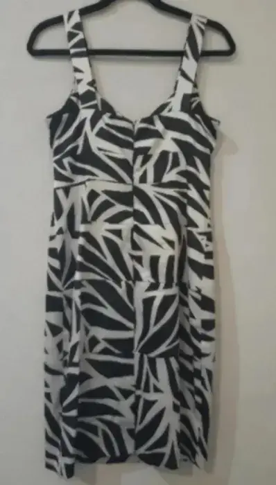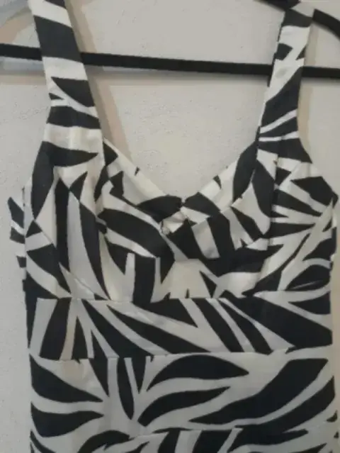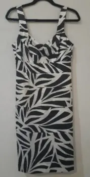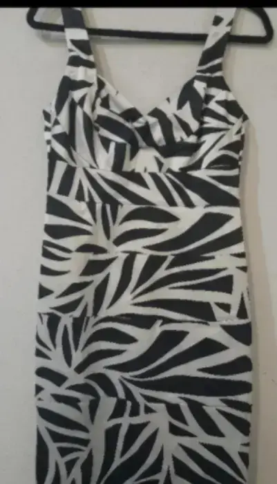Vestido de coctel London Times. Vestido tipo cóctel de tirante grueso, estampado negro y beige, elegante, talla 8, marca London Times. Seminuevo.
