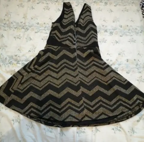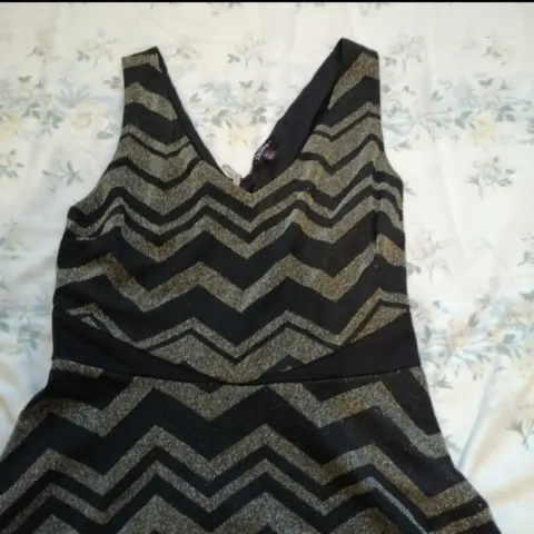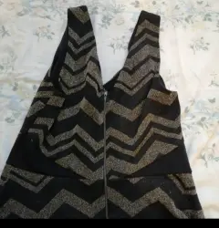 Es todo de brillos, es de tirantes su corte es V de adelante y atrás, atrás trae su cierre, sin detalles en perfecto estado