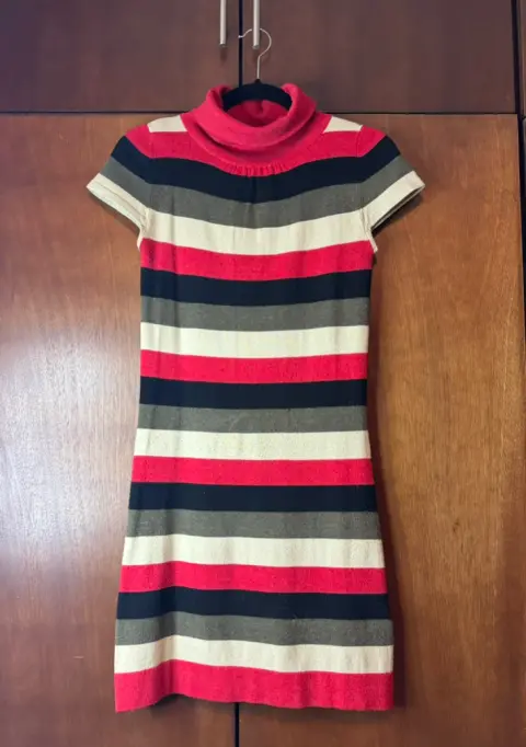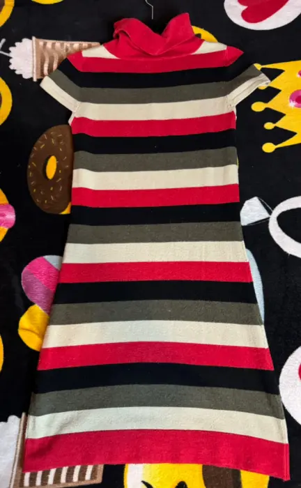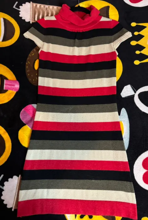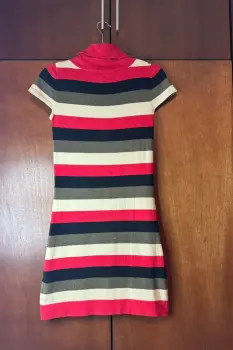 Vestido multicolores, corto, manga corta, cuello de tortuga, de algodón, Talla:34.
