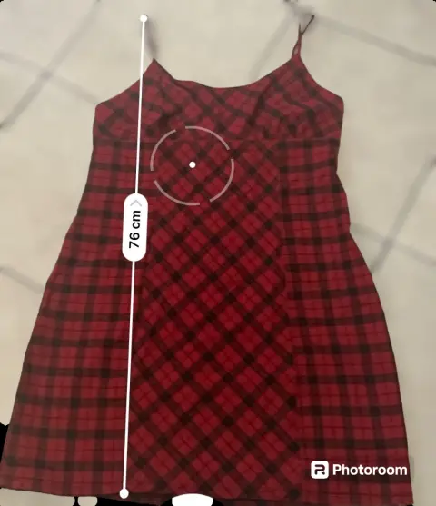 Vestido corto de cuadros, rojo con negro y una línea gris, tela 73% rayón, 24% poliéster y 3% spandex, estira, no trasparenta.
