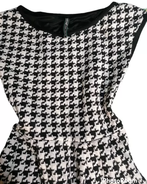 Vestido de cuadros blanco con negro ✨. Bonito vestido corto casual de cuadros sin mangas stradivarius, strech, amolda muy lindo ✨👌 sin detalles excelente estado
