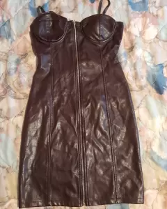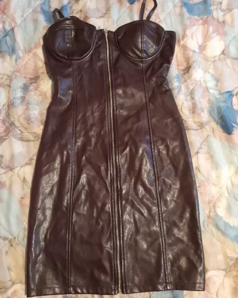 Vestido de cuero con zipper nuevo con etiqueta. Hermoso vestido de cuero con, zipper, nuevo con etiqueta con copas talla M pero queda a S.