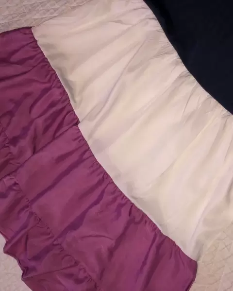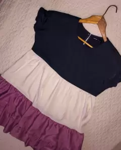 Vestido de 3 colores, prenda amplia de manga corta, con holanes al final de la prenda. Es una prenda muy combinable, se puede usar con tenis, zapatos, sandalias. La tela es muy fresca y se encuentra en perfecto estado.10/10.