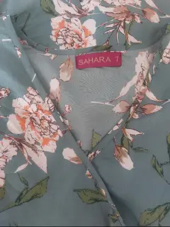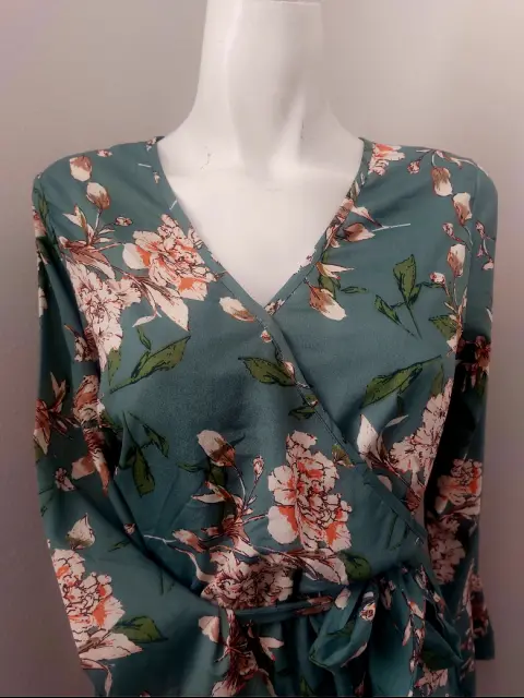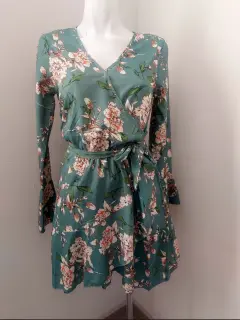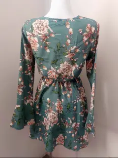 Hermoso vestido de frente cris/cross manga larga y con forma circular colores en el estampado beige, café, naranja y verde.