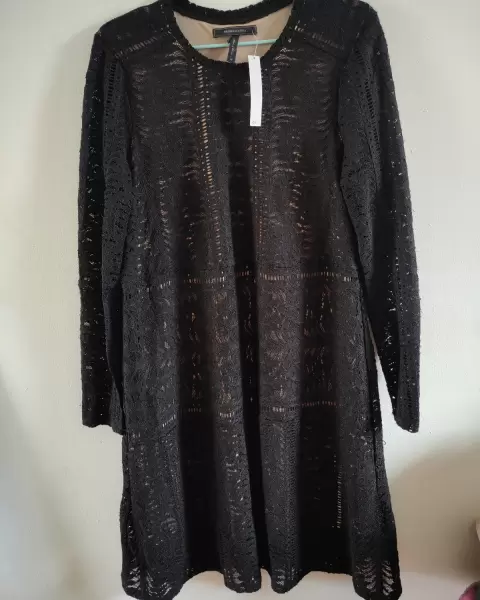 Vestido de encaje. Vestido de encaje con fondo color natural marca BCBG MAXAZRIA talla m pero viene amplio, tambien le queda a una talla L nuevo con etiquetaMedidas 48 cm de axila a axila 101 cm de largo