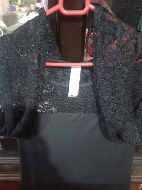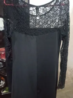 Tela suave, manga larga de encaje, color negroEntalla muy bonito, corto a la rodilla