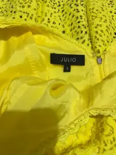 Talla 8 mediana es encaje no estira color amarillo pollito muy bonito , elegante para una fiesta de jardín de tarde