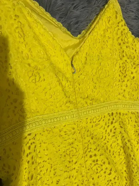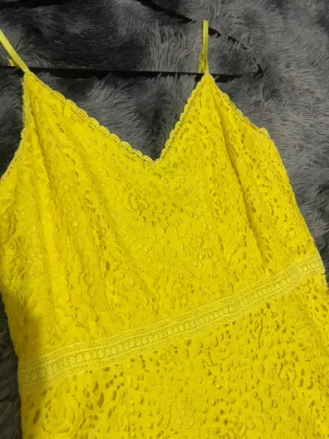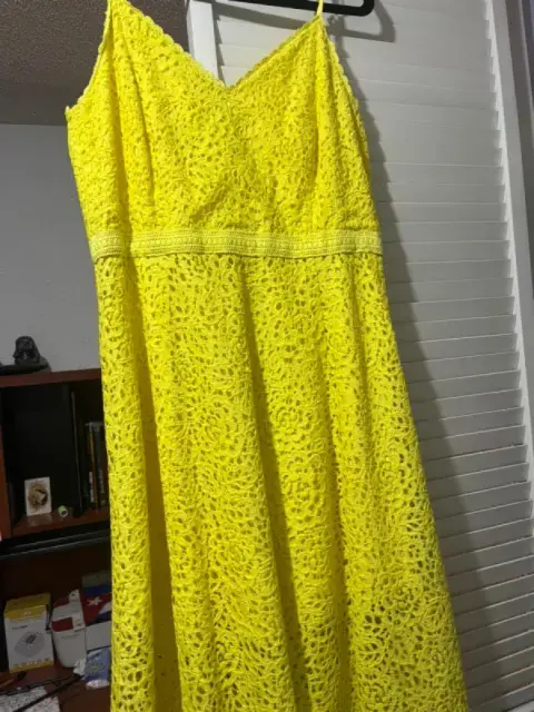 Vestido de encaje amarillo mediano. Talla 8 mediana es encaje no estira color amarillo pollito muy bonito , elegante para una fiesta de jardín de tarde
