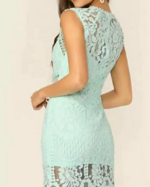 Vestido de encaje color menta. Precioso vestido con detalles de encaje color menta, en perfecto estado.