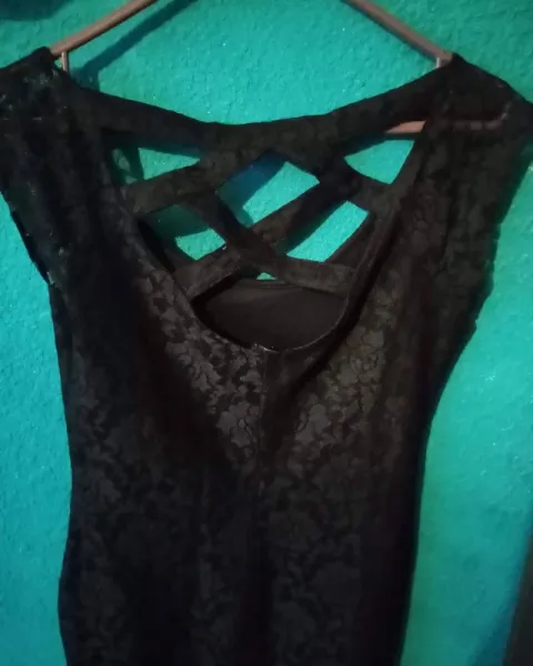 Bonito vestido negro de encajé con tiras en la espalda luce muy bien