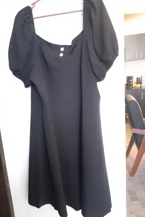 Vestido de escote cuadrado, manga farol, tela gruesa y elastica.122 CM pecho, 111 CM cintura, 101 CM largo, tela elastic, talla 42 mx, 4xl asiaticaAcepto ofertasTodas las compras incluyen obsequioEnvío a la brevedadHago envío único